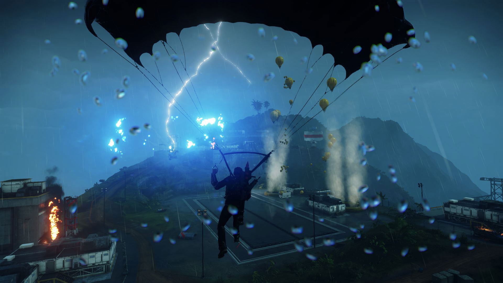 مثل قسمت قبلی همچنان وسیلهی اصلی جابه جایی شما چترنجات، قلاب پرتاب شونده و لباس پروازی است. گرچه بازی وسایل بسیاری از جمله هلیکوپتر و هواپیما برای جا به جایی سریع و البته استفاده در مبارزات در اختیار شما قرار میدهد، با این حال بیشتر مواقع، در دسترس ترین وسیله همان قلاب، چتر و لباس پروازی خواهد بود. البته این سه مورد در مبارزات بازی هم بسیار کاربردری هستند. انفجار و تخریب، عنصر اصلی پیشبرد بازی بوده و محوریت ماموریتهای بازی همین موارد هستند. البته فیزیک خاصی که پیشتر به آن اشاره کردیم هم از نقاط تمایز این بازی با عناوین مشابه است؛ مثلا برای تخریب یک نیروگاه میتوانید کانتینری را به هلیکوپتر خود وصل کنید و با تاب دادن آن کل نیروگاه را با خاک یکسان کنید، یا هلیکوپتر جنگندهی دشمن را بین زمین و هوا بدزدید و از آن برای حمله استفاده کنید.