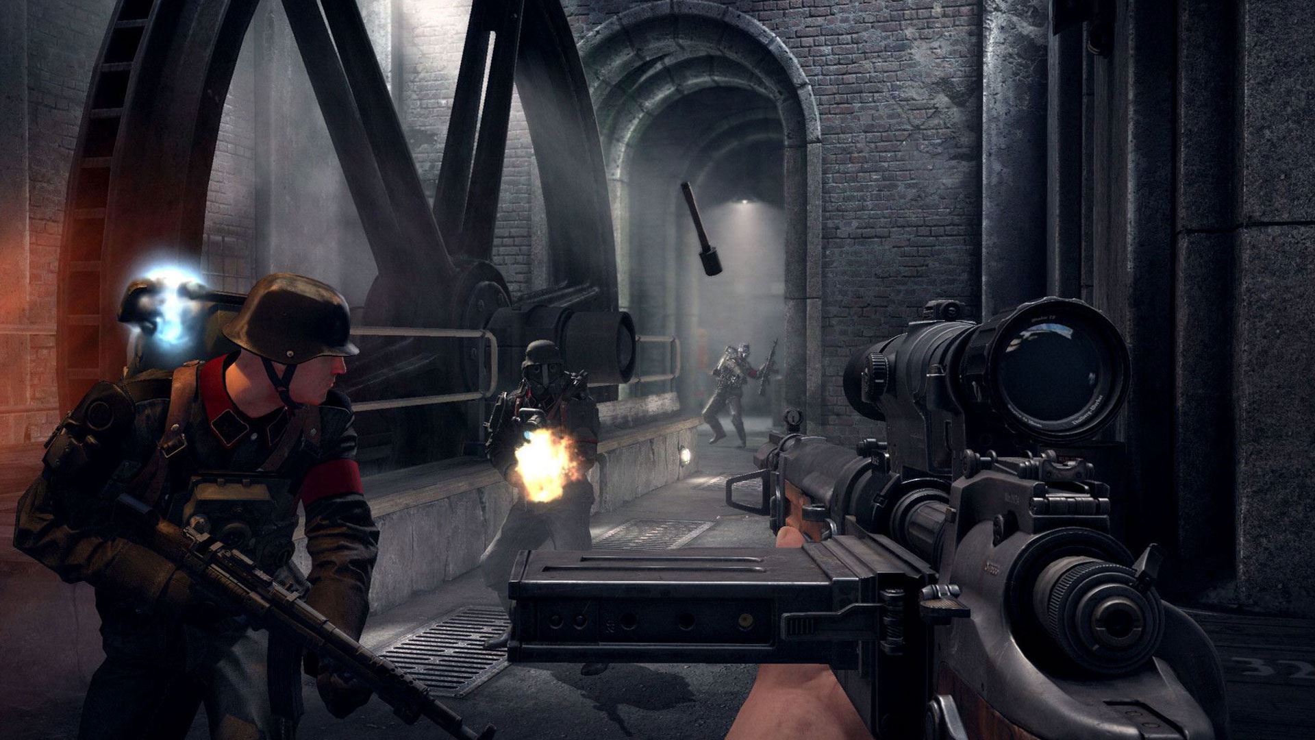 بازیکنان از سلاح سرد ، سلاح گرم و مواد منفجره برای مبارزه با دشمنان استفاده می کنند. همچنین می توانند بدوند، بپرند و گاهی شنا کنند. از حملات و ضربات فنی و سلاح سرد می توان برای از بین بردن بی سرو صدای دشمنان بدون شناسایی شدن استفاده کرد. دشمنان در بازی به دسته بندی های مختلفی تقسیم می شوند؛ سربازان انسانی استاندارد که از نظر استقامت باهم متفاوت هستند، شخصیتهای ربات مانند که به نام Supersoldaten (Super Soldiers)، سگهای مکانیکی غولپیکر معروف به Panzerhunds، سربازان نازی زامبیمانند و غیرنظامیان معروف به Shamblers، و سگهای هار ولگرد از جمله دشمنانی هستند که بازیکنان با آنها دست و پنجه نرم می کنند.