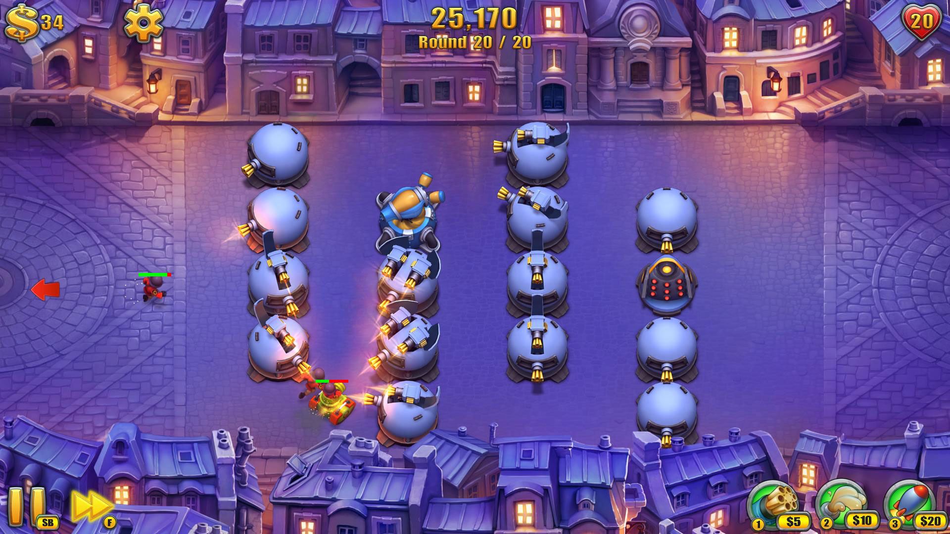 زمانی که 20 نفر از دشمنان از مرز تعیین شده ای که باید از آن دفاع کنید بگذرند، بازی را خواهید باخت. اگر بازیکنان برنده شوند، بازی 1 ستاره (برای حالت معمولی)، 2 ستاره (برای حالت سخت) و 3 ستاره (برای حالت قهرمان) به بازیکنان میدهد. بازیکنان می توانند پس از گذراندن هر سطح، بازی را در حالت بی پایان ادامه دهند. مهم نیست که بازیکنان از این سطح عبور کنند یا نه، بازی مقدار مشخصی سکه را با توجه به عملکرد بازیکنان به آنها می دهد. بازیکنان می توانند از سکه ها و ستاره های به دست آمده برای خرید برج های قدرتمندتر استفاده کنند و یا سیستم تدافعی فعلی خود را ارتقاع دهند. این بازی 25 نوع سلاح و 5 نوع آیتم را ارائه می دهد که هر یک از آنها محدوده، تأثیر، نقاط ضعف و قوت مشخصی دارند.