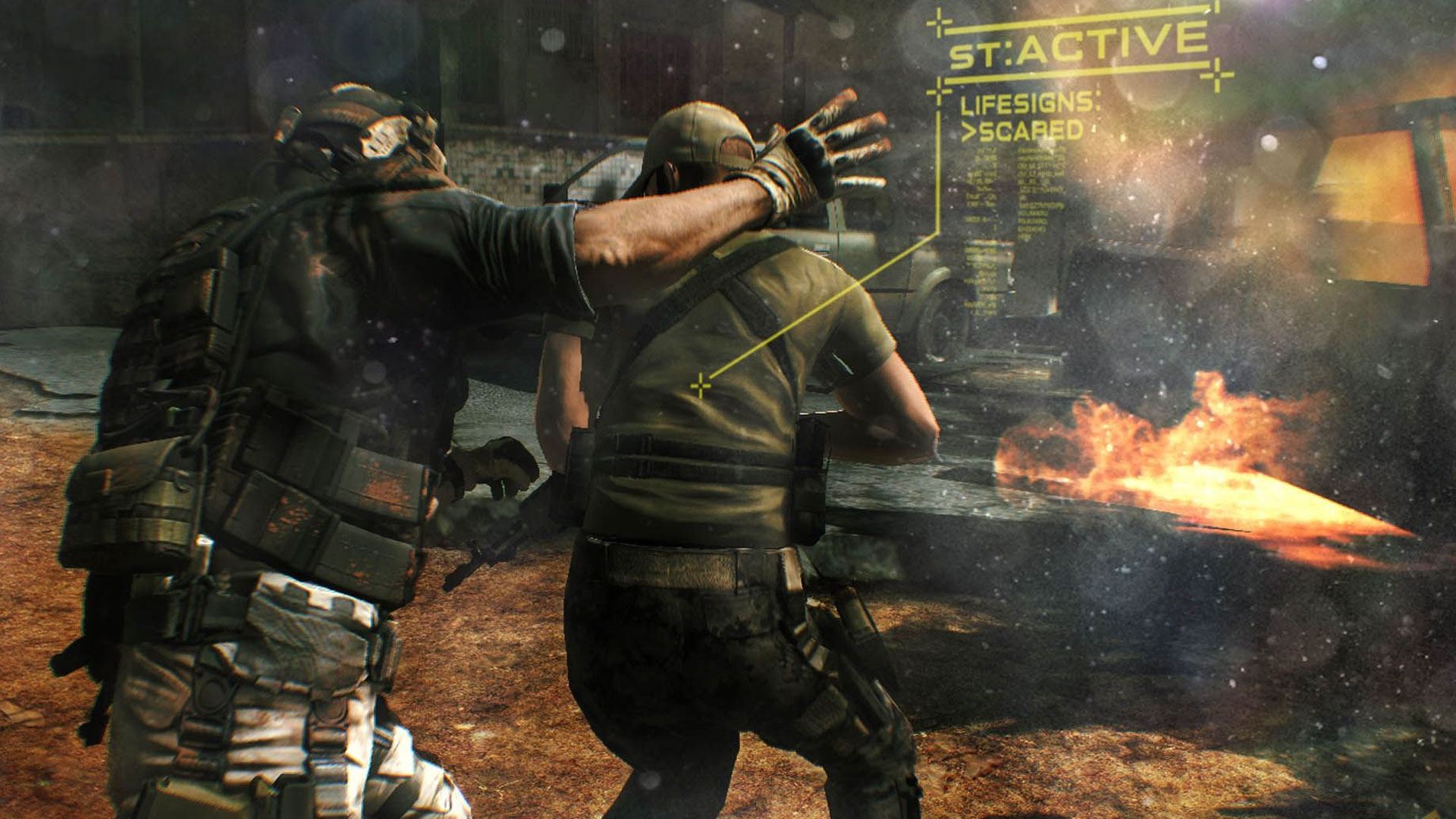 بازیکن میتواند تا چهار هدف را با علامتگذاری به ترتیب دستور داده شده از بین ببرد. بعد از اجرای دستور اعضای تیم به همان ترتیب تعیین شده شروع به شلیک می کنند. تا زمانی که دشمن هنوز از حضور تیم Ghost بیاطلاع باشد می توان تا 4 نیرو را در آن واحد از بین برد. این مکانیک توسط بازی به عنوان "Sync Shot" یاد می شود. به بازیکن نمادهایی نشان داده میشود که نشان میدهند چه زمانی هم تیمیها در موقعیتی قرار گرفتهاند و اهداف مشخصشده را هدف گرفتهاند. اگر بازیکن تا سه هدف را علامتگذاری کند، بازیکن میتواند به آنها دستور شلیک بدهد یا یکی از اهداف را نشانه بگیرد و شلیک کند، در این مرحله همتیپهای تیم به طور همزمان شلیک میکنند. اگر بازیکن چهار هدف را علامت گذاری کند، بازیکن باید یکی از اهداف را نشانه گرفته و برای از بین بردن هر چهار هدف شلیک کند.