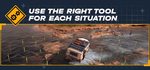 وسایل نقلیهی خود را با فناوریهای پیشرفته و ابزارهای نوآورانه مجهز کنید تا در دل طبیعت به موفقیت برسید. از وینچ و لنگرهای قابلحمل برای انجام مانورهای پیچیده استفاده کنید و با اکوساندر از رودخانههای خطرناک عبور کنید. ابزارهایی که در اختیار دارید، میتوانند سرنوشت اکسپدیشن شما را رقم بزنند—پس هوشمندانه انتخاب کنید!