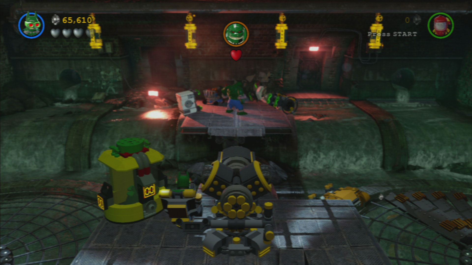 محیط های مختلفی در بازی وجود دارد که همه بر اساس مکان های دنیای DC Comics هستند. چندین مرکز برای قهرمانان در بازی وجود دارد مانند : غار مخفیگاه بتمن، "ماه" و تالار عدالت. در اینجا، بازیکن میتواند پازلها را برای یافتن، کسب یا باز کردن قفل «آجرهای طلا» یا «قابلیت های شخصیت بازی»، دسترسی به سطوح اصلی بازی و تکمیل ماموریتهای جانبی، کشف و تکمیل کند. همچنین ویژگیهای خاص دیگری مانند فعال کردن «آجرهای قرمز» و مشاهده «کیتهای کوچک» (که در سطوح جمعآوری شدهاند) وجود دارد. بازیکنان همچنین میتوانند شخصیت خود را با استفاده از قطعاتی از شخصیتهایی که قبلا باز کرده است و همچنین مجموعهای محدود از سلاحها ایجاد کنند.