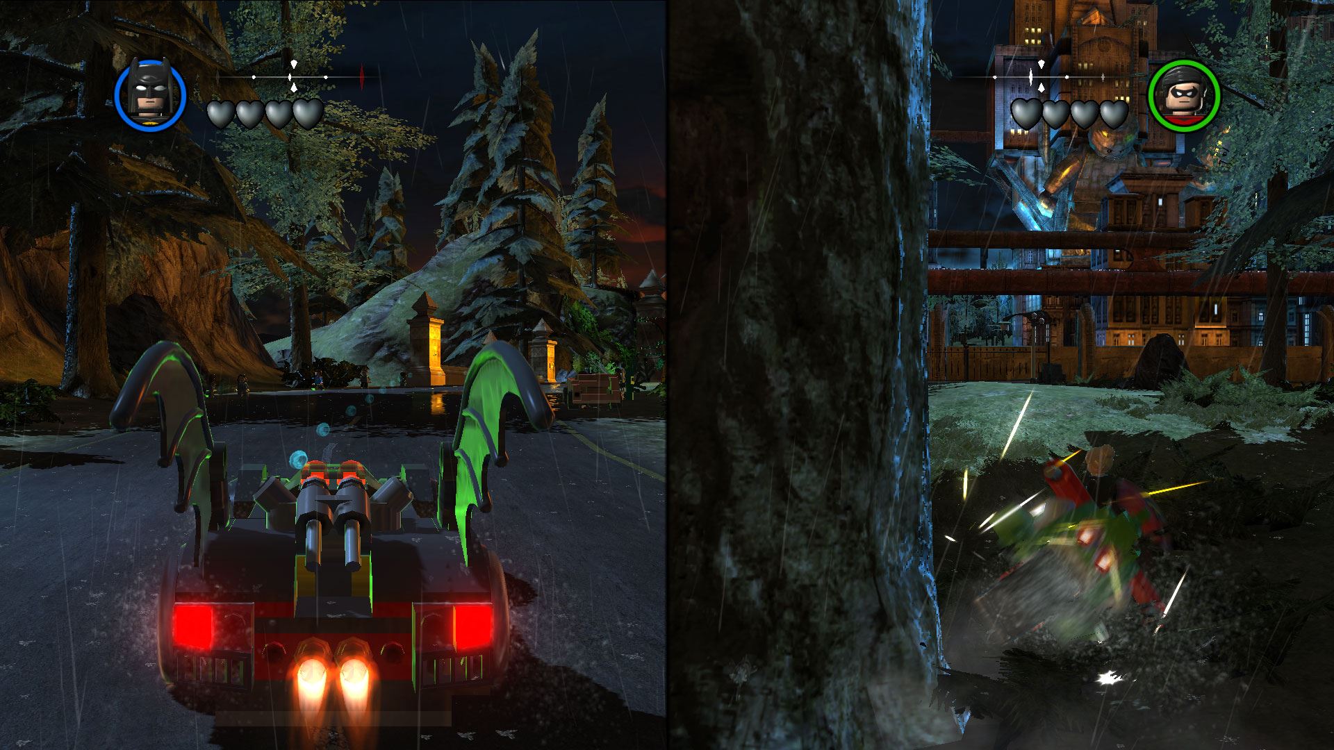 این بازی در منظر سوم شخص ارائه می شود و ماموریت های بازی تاکید بر اکتشاف را نشان می دهد. بازیکن میتواند ماموریتهای جانبی مختلفی را در شهر خیالی گاتهام انجام دهد تا قفل شخصیتها را باز کند و پس از انجام ماموریتها از آنها استفاده کند. این بازی اولین بازی از سری Lego Traveller's Tales است که دارای دیالوگ های گفتاری و یک دنیای باز است.