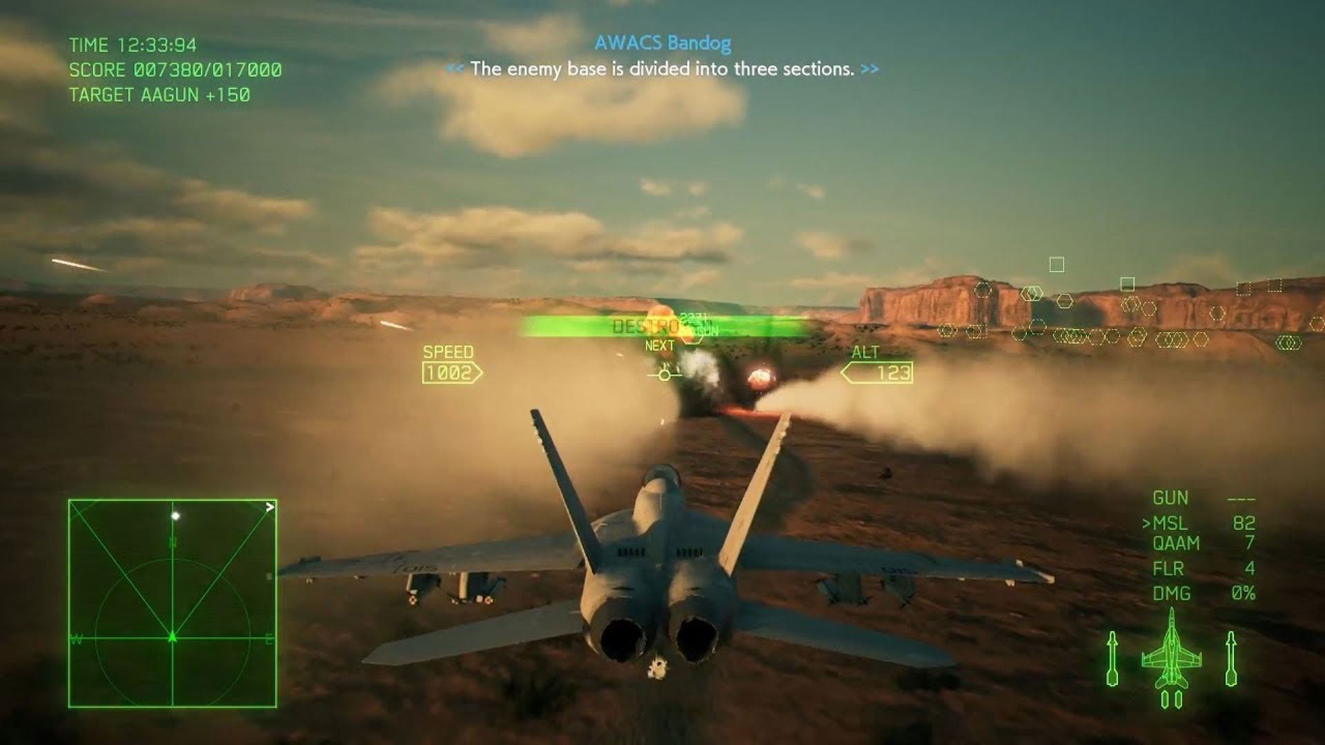 اساسا یکی از نکاتی که این عنوان را از دیگر بازیهای مشابه متمایز میکند، گیم پلی آن است. Ace Combat 7 گیم پلی روانی دارد. شما به راحتی پس از انجام چند مرحله اول ذهنیتی شفاف از سیستم نبردهای بازی به دست میآورید. مانورهای هواپیماها آنچنان سخت نیست اما برای انجام درست و موفق برخی از آنها کمی به زمان نیاز دارید. انواع و اقسام جنگندههای مدرن و امروزی، مسلح به موشکهای مختلف و تیربار در اختیار شما هستند که هر یک به دقت طراحی شدهاند و تفاوت هر یک با دیگری کاملا محسوس است. بازی از لحاظ گرافیکی هم بسیار خوب ظاهر شده. جزئیات جنگندهها و ساختار آسمان که محیط اصلی بازی را تشکیل میدهد، در کنار شرایط مختلف آب و هوایی، انفجارهای دیدنی و هوش مصنوعی قوی جنگندههای دشمن، میدان نبردی دیدنی و باورپذیر را به شما ارائه خواهند داد. طراحی مراحل بازی هم به چند دسته کلی تقسیم میشوند؛ شما یا باید اهداف زمینی دشمن را نابود کنید، یا بین زمین و آسمان با جنگندههای دشمن درگیر شوید، و یا ماموریتهای مخفیانه و جاسوسی انجام دهید. در برخی مراحل هم باید به جنگ خلبانان ردهبالای دشمن بروید که از دیگر مراحل بازی کمی سختتر و چالش برانگیزتر هستند.
