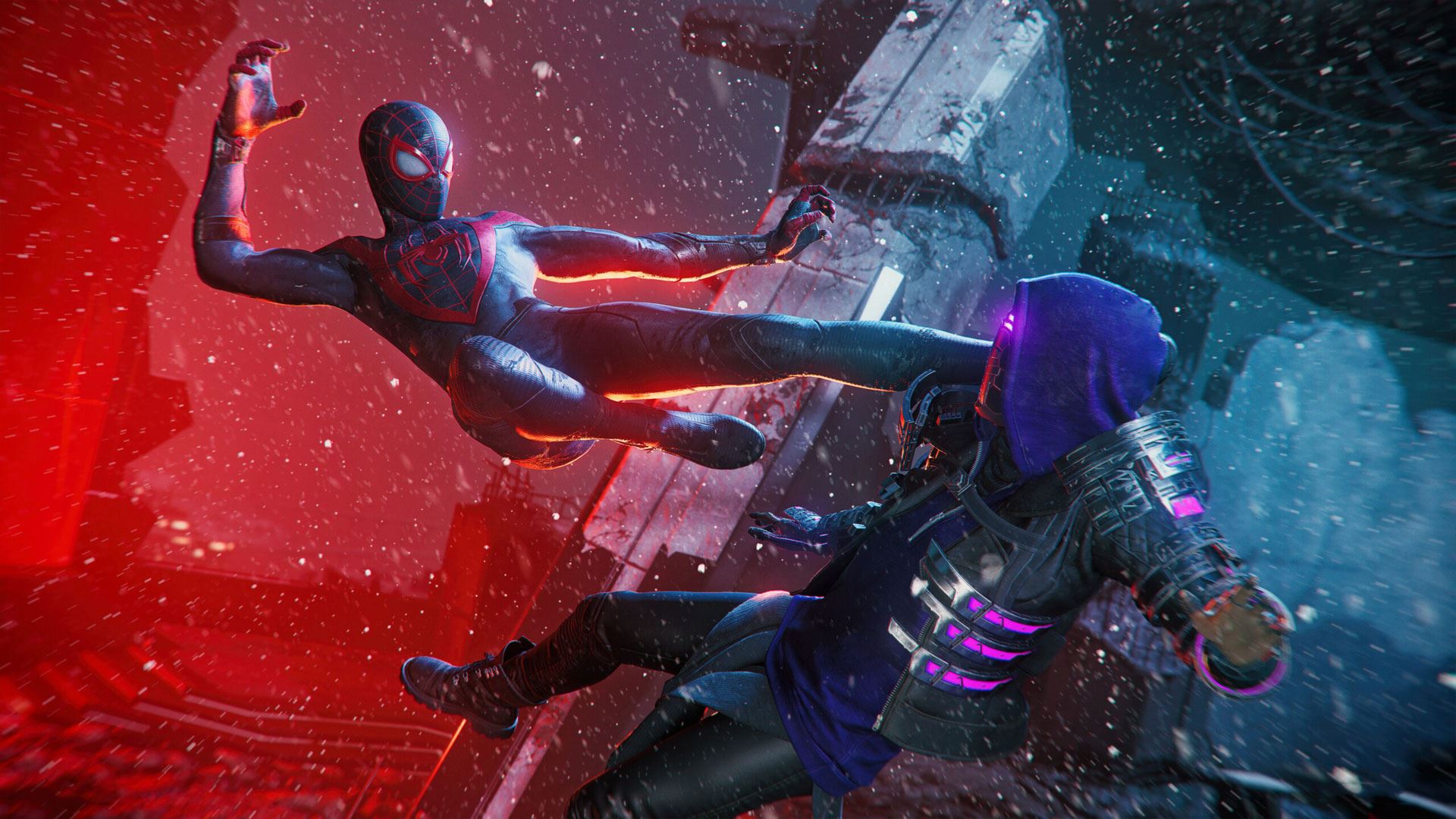 گیم پلی بازی از منظر سوم شخص با تمرکز اصلی بر روی پیمایش و توانایی های رزمی مایلز ارائه می شود. شما می توانید بطور آزادانه کیلومترها در شهر نیویورک حرکت کنید، با شخصیتها تعامل داشته باشید، ماموریتها را بر عهده بگیرید و با پیشروی در داستان اصلی یا تکمیل وظایف، ابزارها و لباسهای جدید را باز کنند. در خارج از داستان، بازیکن میتواند ماموریتهای جانبی را برای باز کردن قفل محتوای اضافی و آیتمهای کلکسیونی انجام دهد. نبرد بر روی زنجیره زدن حملات با هم و استفاده از محیط و شبکهها برای ناتوان کردن دشمنان متعدد و در عین حال اجتناب از آسیب تمرکز دارد.