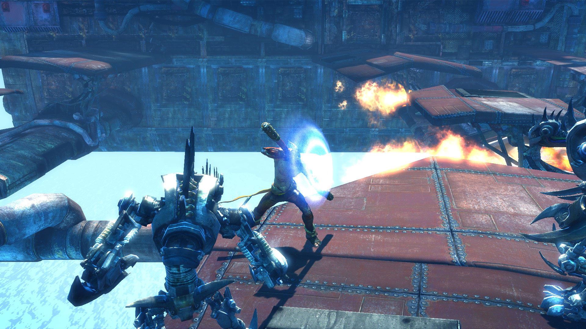 بازیکن در نقش " Monkey" در منظر سوم شخص بازی می کند و از انواع حرکات جنگی و مهارت های پلتفرمینگ برای غلبه بر موانع استفاده می کند. در نبردها Monkey از یک عصا استفاده می کند که به عنوان یک سلاح پرتابه دوربرد عمل می کند. کارکنان دو نوع مهمات دوربرد به شکل سیلندرهای قدرت دارند: سیلندرهای نارنجی که برای آسیب انفجار و استوانه آبی برای مبارزه با دشمنان استفاده می شود. Monkey همچنین می تواند ثابت بماند و کارکنان خود را برای استفاده از همان حمله شوکر شارژ کند. در بازی، بازیکنان به عنوان دشمن با ماشین های متعددی مواجه می شوند. می توان از ماشین های خاصی به عنوان سلاح استفاده کرد. زمانی که سلامتی دشمنان کم می شود Monkey میتواند یک حرکت تمامکننده بر روی آنها انجام دهد، مانند کندن اسلحه از برجک یا پرتاب یک دشمن انفجاری به سمت سایر ماشینهای جنگی. توانایی های دیگر Monkey عبارتند از سپر نیروی او که می تواند مقدار معینی از آسیب را قبل از نیاز به شارژ مجدد مسدود کند. و دستگاه "ابر" که به عنوان یک تخته شناور ظاهر می شود که می تواند برای سر خوردن روی آب یا زمین با سرعت زیاد استفاده شود. هنگامی که دشمنان شکست میخورند، گویهای فناوری آنها روی زمین می افتد که میتوان از آنها برای ارتقای تواناییهای Monkey استفاده کرد. این گویها به بازیکن اجازه می دهند تا حرکات و توانایی های جدید برای مبارزه و وسایل را بیاموزد، نوار سلامت خود، سپرها و آسیب هایی که می تواند به دشمنان وارد شود را افزایش دهد. گویها را میتوان در سطوح مختلف پیدا کرد، گاهی اوقات دور از دید پنهان میشوند و به کاوش بیشتری نیاز دارند.