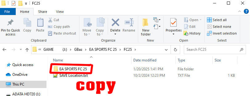 بعد از هر آپدیت یک اسکواد به بازی اضافه میشود که حتما باید در بازی آن را لود کنید اما قبلش لازم است تا اسکواد رو به مسیر سیو ببرید برای این کار به پوشه محل نصب بازی رفته و پوشه EA SPORTS FC 25 را کپی کرده