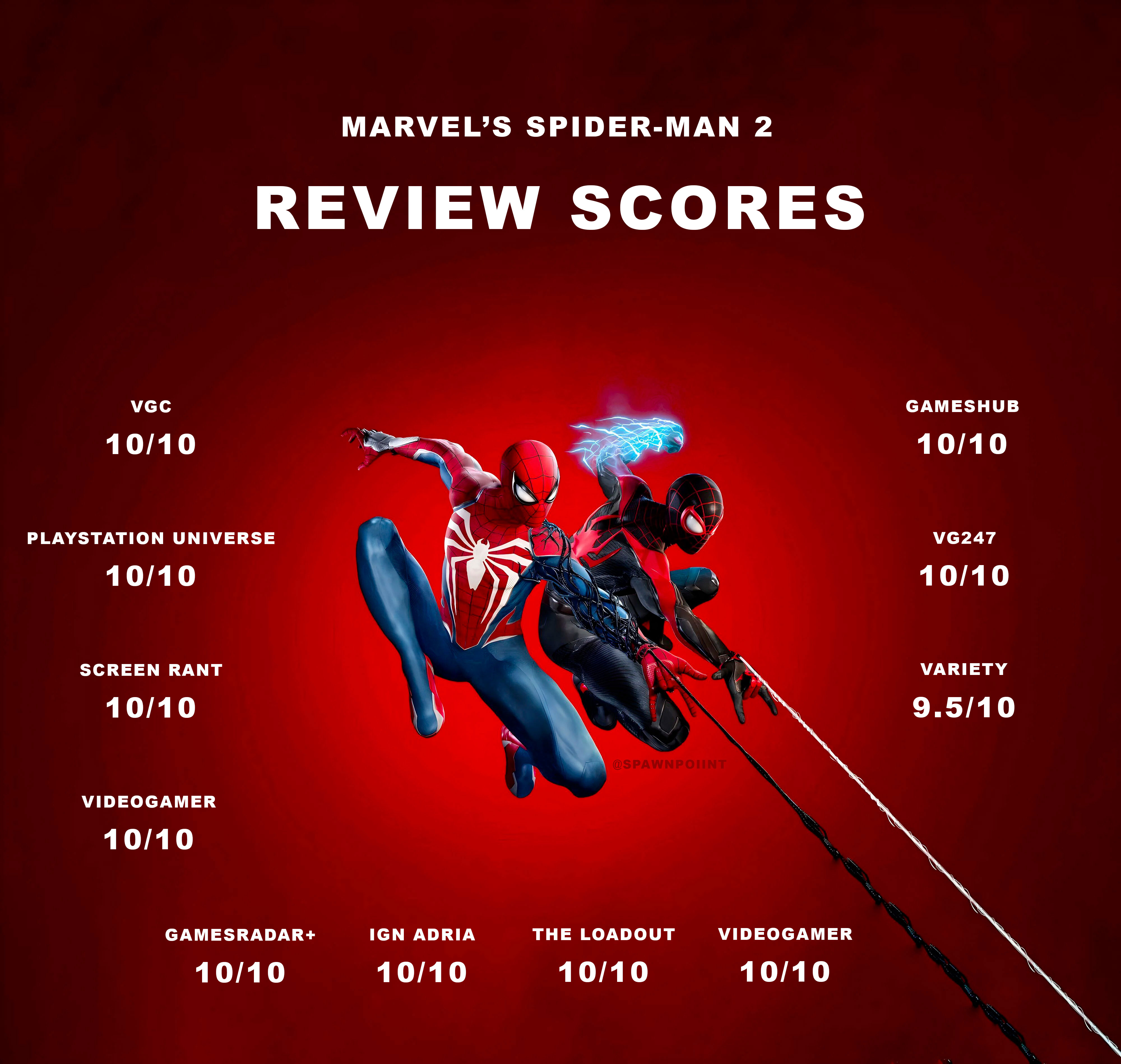 داستان بازی به خوبی نوشته شده و شخصیتها به خوبی توسعه یافتهاند. ونوم و هانتر نیز بهعنوان کاراکترهای شرور بازی، شخصیتهای جذاب و دوستداشتنیای هستند. گیمپلی بازی نیز به لطف قابلیتهای جدید کنترلر DualSense، به سطح جدیدی از هیجان و لذت رسیده است. تارزنی در شهر نیویورک با پیتر پارکر، ضربات مهلک او و توانایی تولید برق مایلز مورالس، همگی با کنترلر DualSense بهخوبی به تصویر کشیده شدهاند. گرافیک بازی نیز خیرهکننده است و پیشرفت بزرگی نسبت به نسخه اول داشته است.